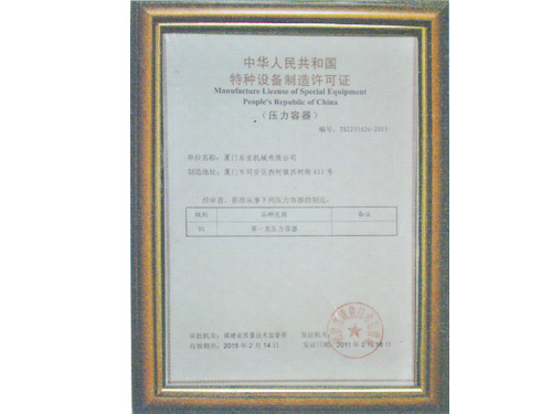 压力容器制造许可证